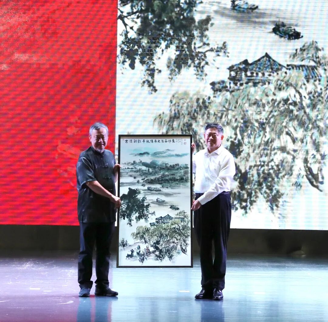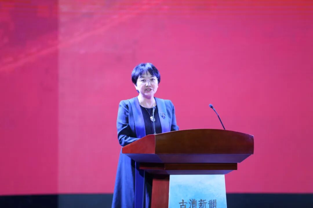 周岚在致辞中回顾了“古漕新韵 千秋传承”苏台文化交流活动自2018年以来取得的各项成果,介绍了近两年来活动在内容和传播形式上作出的新尝试,总结了今年苏州、淮安、宿迁写生行的概况与作品交流展概况。她说,大运河不仅是一条运输通道,更是一座桥梁,将大运河沿线紧密相连,让中华文明在这水道上传承交融。两岸同胞同根同源、同文同种,中华文化是两岸同胞心灵的根脉和归属。她希望“古漕新韵 千秋传承”苏台文化交流活动,能够继续传承大运河文化,构筑交流互鉴的桥梁,推动两岸同胞加深相互理解,增进互信认同,共同传承中华优秀传统文化,合力推动中华优秀传统文化创造性转化、创新性发展,不断开创两岸文化交流新局面。